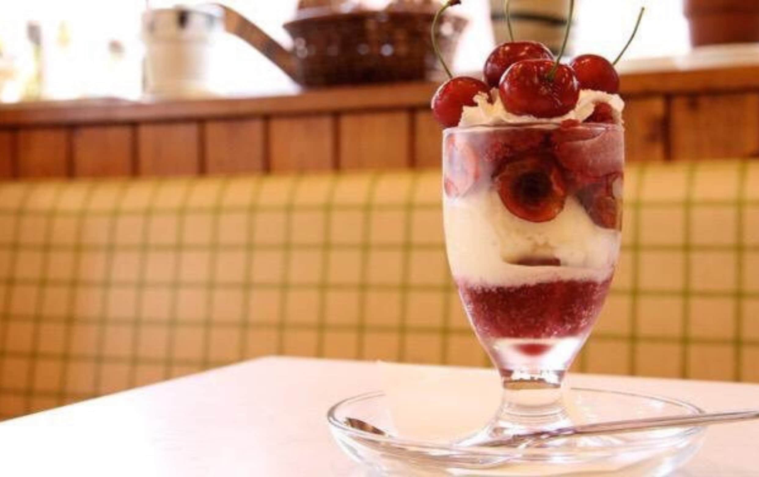 【季節限定パフェ】自家製のチェリーシャーベットが格別