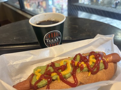 とっても落ち着いた空間を楽しめるタリーズコーヒーです。2階は商店街を歩くひとたちなどを眺めながら、ゆっくりと過ごせます。本日はゆっくりめの朝食にホットドッグとコーヒーを。とっても美味しかったです!