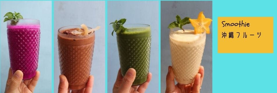 地元糸満などの新鮮なお野菜と果物を贅沢にふんだんに使ったデトックスグリーンスムージー。