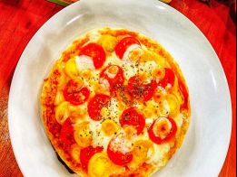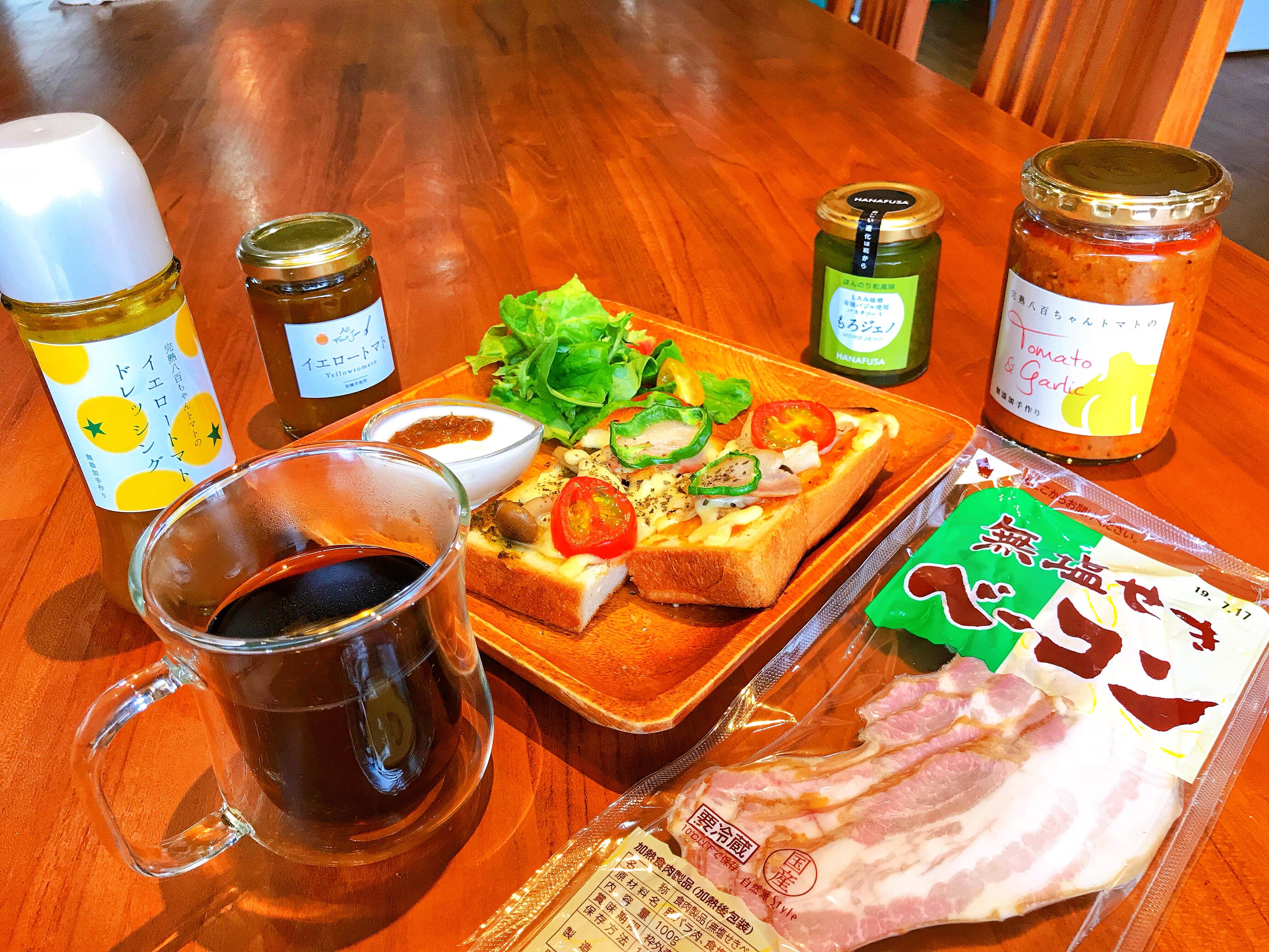 HANAFUSAのもろジェノとみつヴィレッジの無添加トマトバジルソースの2種類のソース 八百ちゃんトマトと無塩せきベーコンを使用