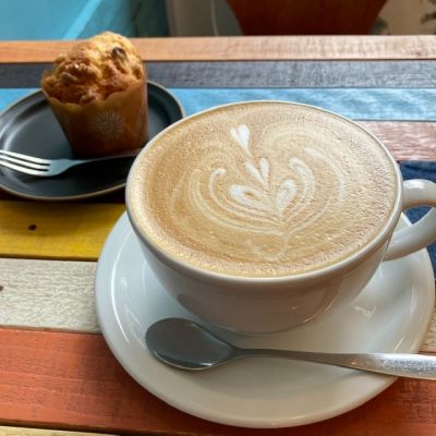 シナモンラテの香りが豊かで泡の塩梅がとってもよく、気の利いた本があって道行く人を眺めながら満たされた時間を過ごしました。