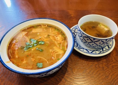 ランチのセットスープはプラス100円でトムヤムクンに変更できたり