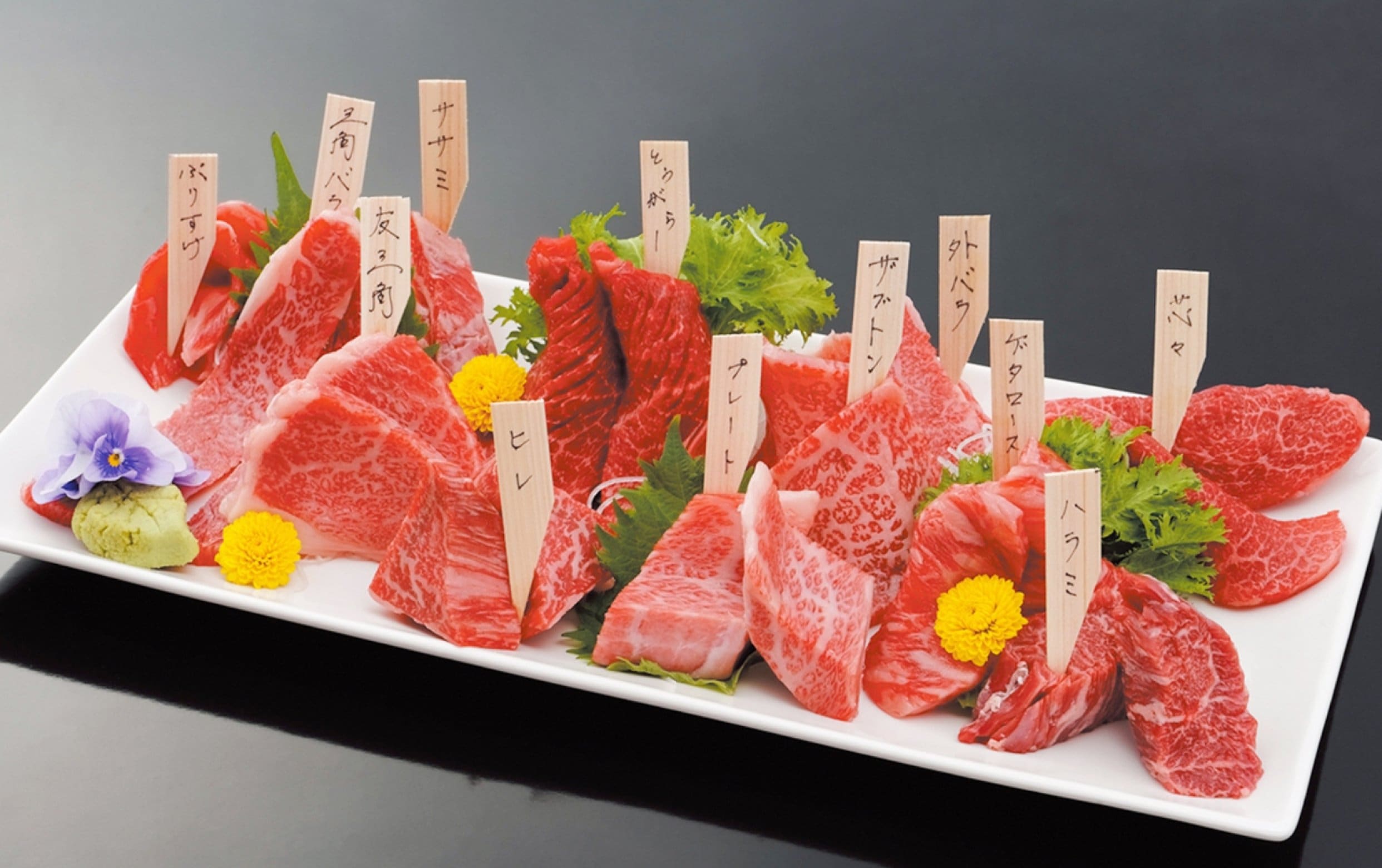 厳選黒毛和牛一頭買いだからこそできる、自慢のセットメニュー。お肉の部位ごとに名前の札があるので、お気に入りの部位がありましたら追加でもご注文ください。