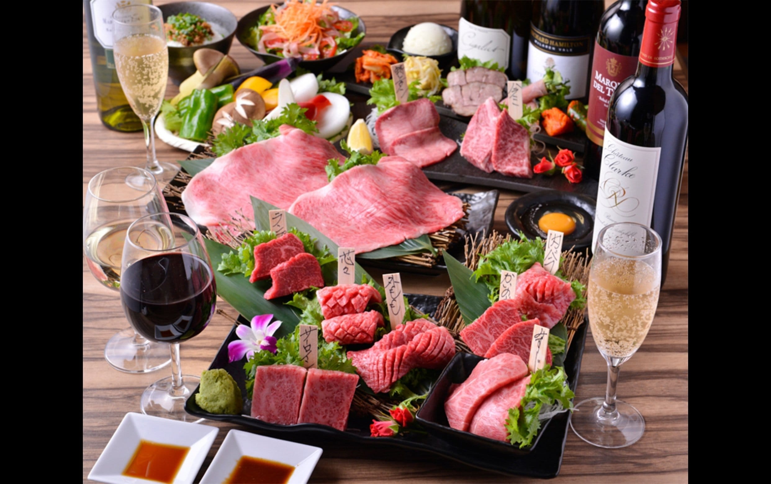 贅沢な宴を5,000円から。A5黒毛和牛の極上部位を楽しむ、2時間飲み放題付きコース